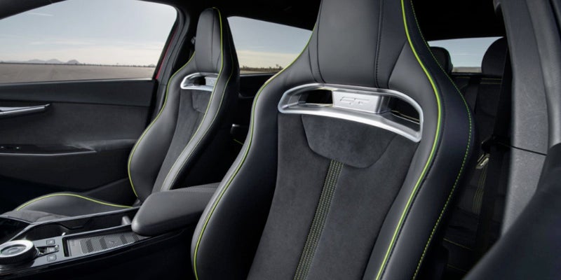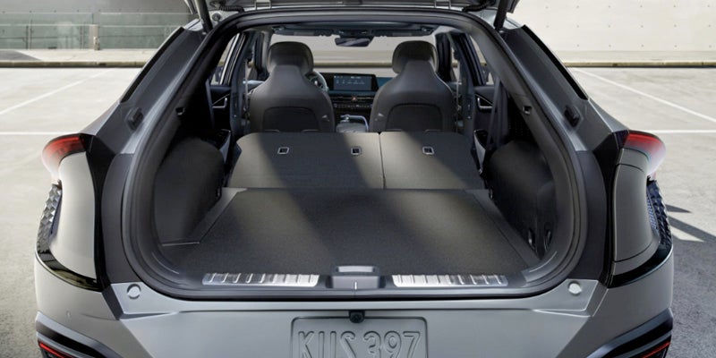 The interior of the Kia EV6 offers convenience and comfort to you and your passengers with multiple ports to charge your phone and other devices while driving. It also includes a Wi-Fi hotspot and dual 12.3-inch panoramic connectivity displays for navigation and entertainment. Each trim has two rows of seats made from vegan leather and recycled materials, so you can seat five passengers, including yourself.
