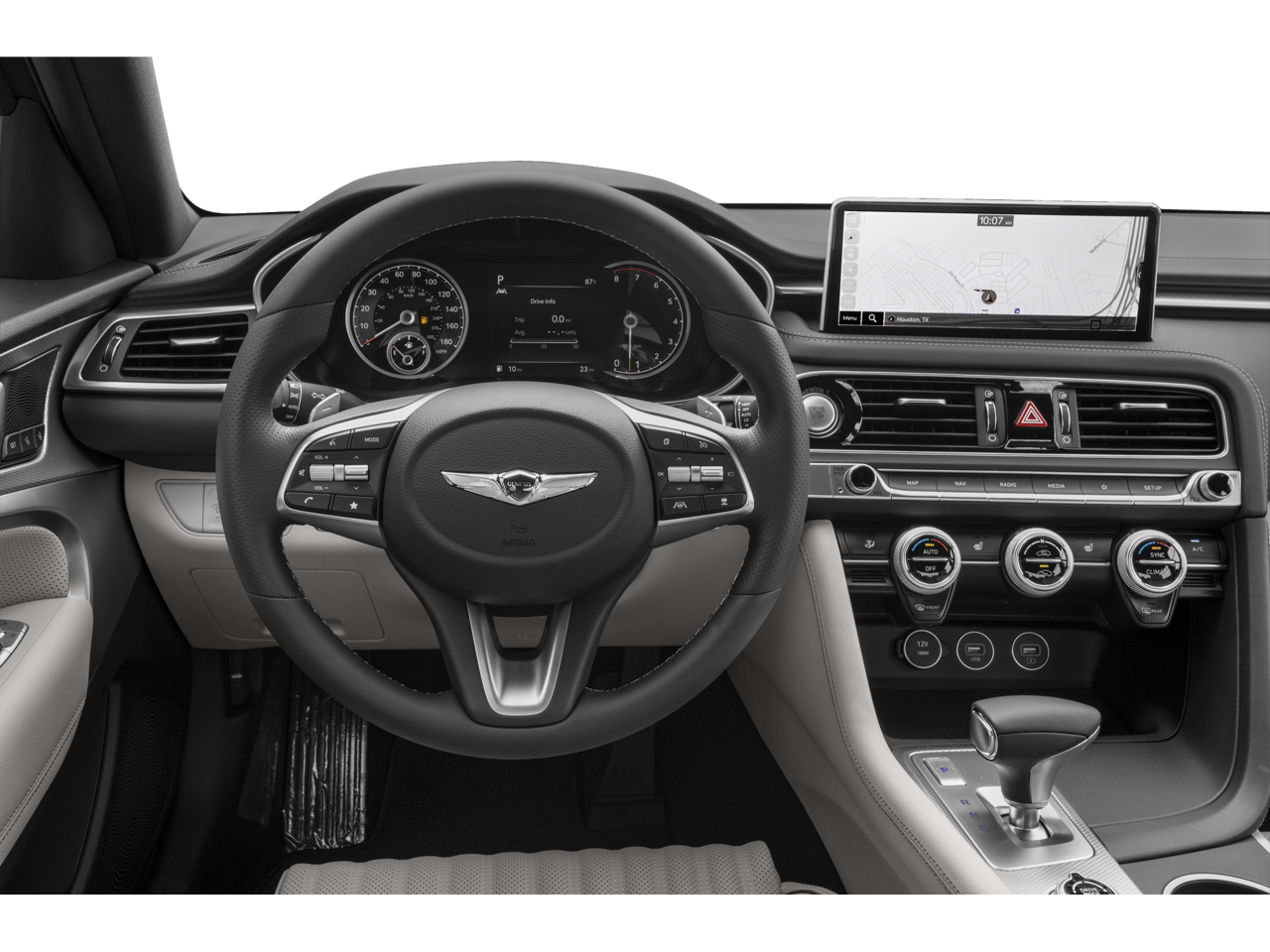 - Radio: AM/FM/SiriusXM/HD Audio System -inc: 6 speakers including subwoofer, 6 channel internal amplifier, speed-sensing auto volume control, 5th generation navigation system w/10.25" touchscreen, dynamic voice recognition, connected routing, over the air updates, Android Auto and Apple CarPlay, Bluetooth® hands-free phone system, steering wheel audio, cruise and phone controls, USB front and Genesis Connected Services