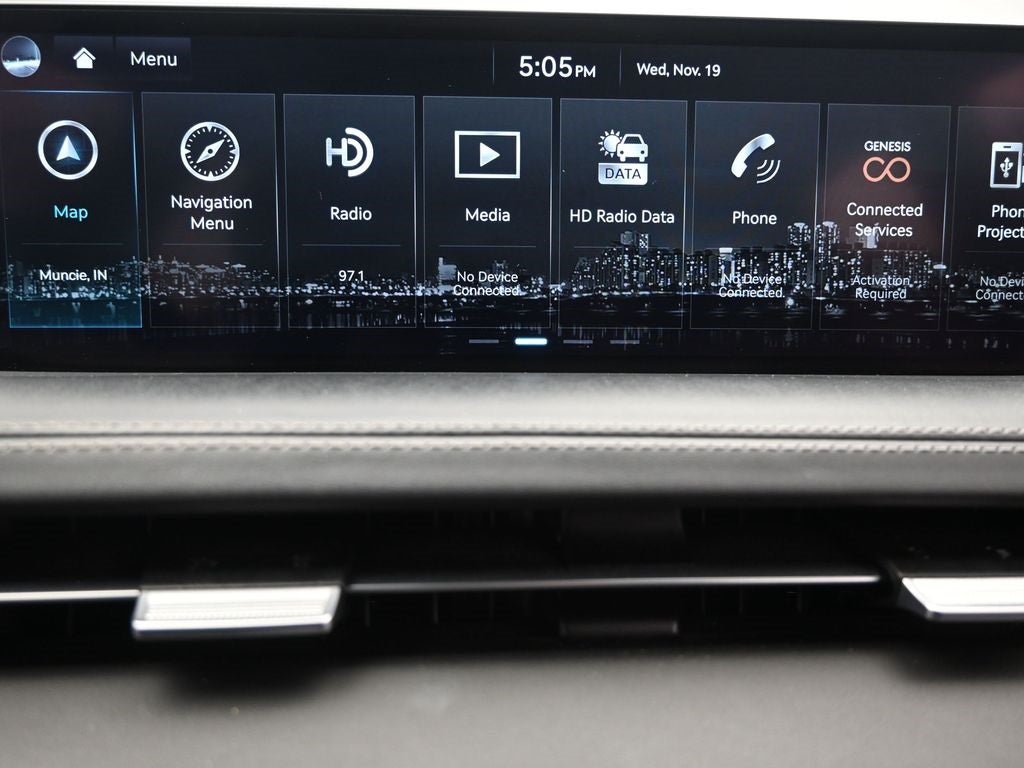 - Radio: AM/FM/SiriusXM/HD Premium Audio System -inc: navigation system, 9 speakers, internal amplifier, 14.5" HD display screen, Apple CarPlay and Android Auto, Bluetooth® hands-free phone system w/audio streaming, USB ports and Genesis Connected Services