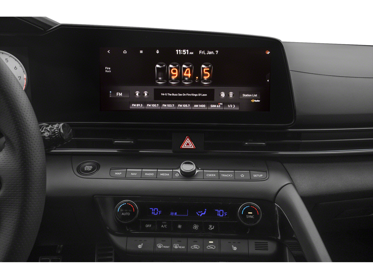 - Radio: Bose AM/FM/HD/SiriusXM Audio System -inc: 8 speakers w/center channel and subwoofer, 10.25" high resolution touchscreen navigation system, Android Auto and Apple CarPlay, SiriusXM Data Services including NavTraffic, NavWeather and sports and stocks (3-month trial), Bluetooth® hands-free phone system w/dynamic voice recognition, dual USB ports, BlueLink Connected Car Services and speed-sensitive automatic volume control