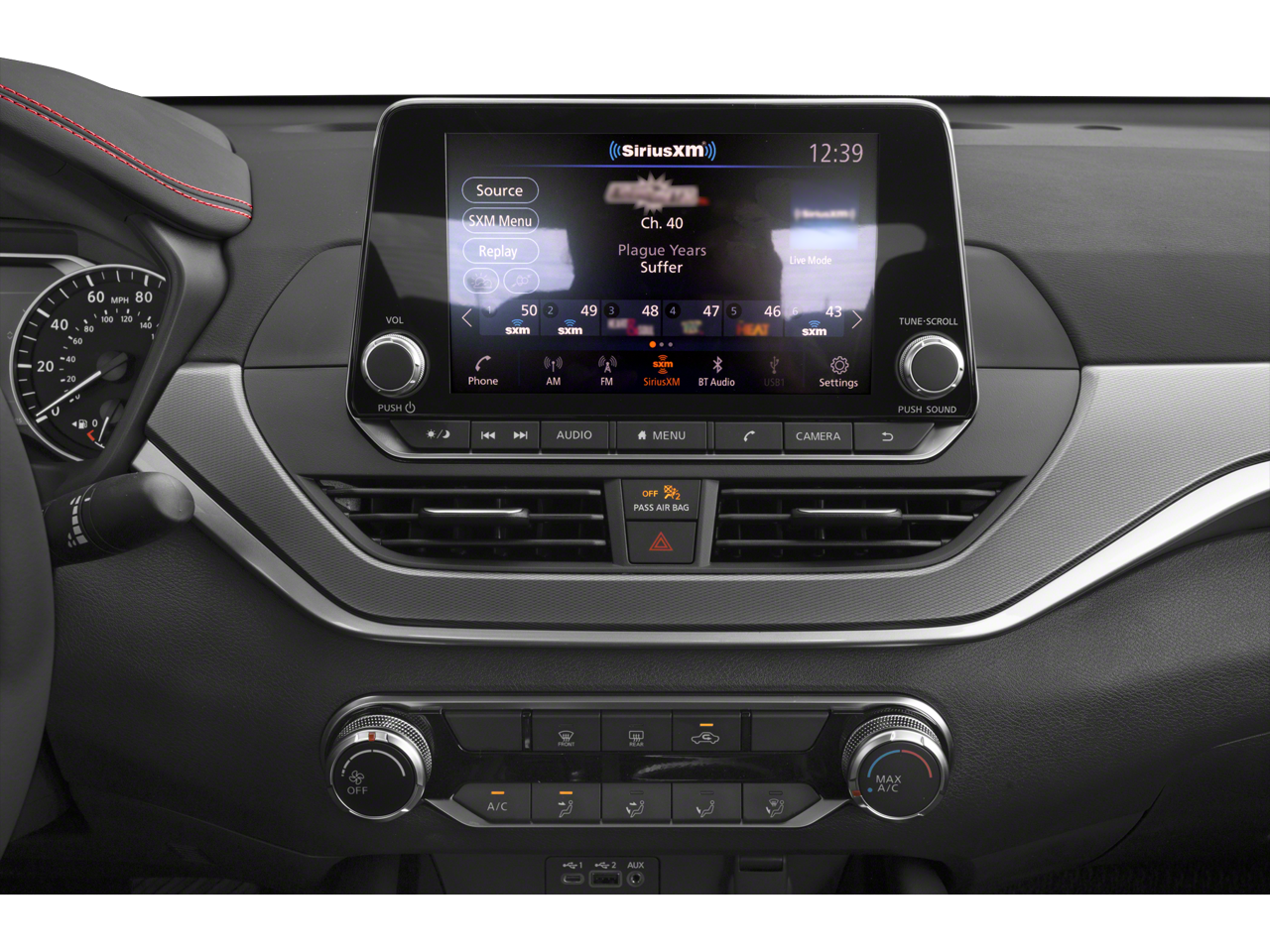 - Radio: AM/FM Audio System -inc: RDS, MP3 and aux-in, 6 speakers, NissanConnect featuring Apple CarPlay, Android Auto, 8" color touch-screen display, 1 front illuminated USB port (type-C) for compatible devices, SiriusXM radio w/advanced audio features, Bluetooth® hands-free phone system, streaming audio via Bluetooth®, hands-free text messaging assistant, Siri Eyes Free and Google Assistant voice recognition