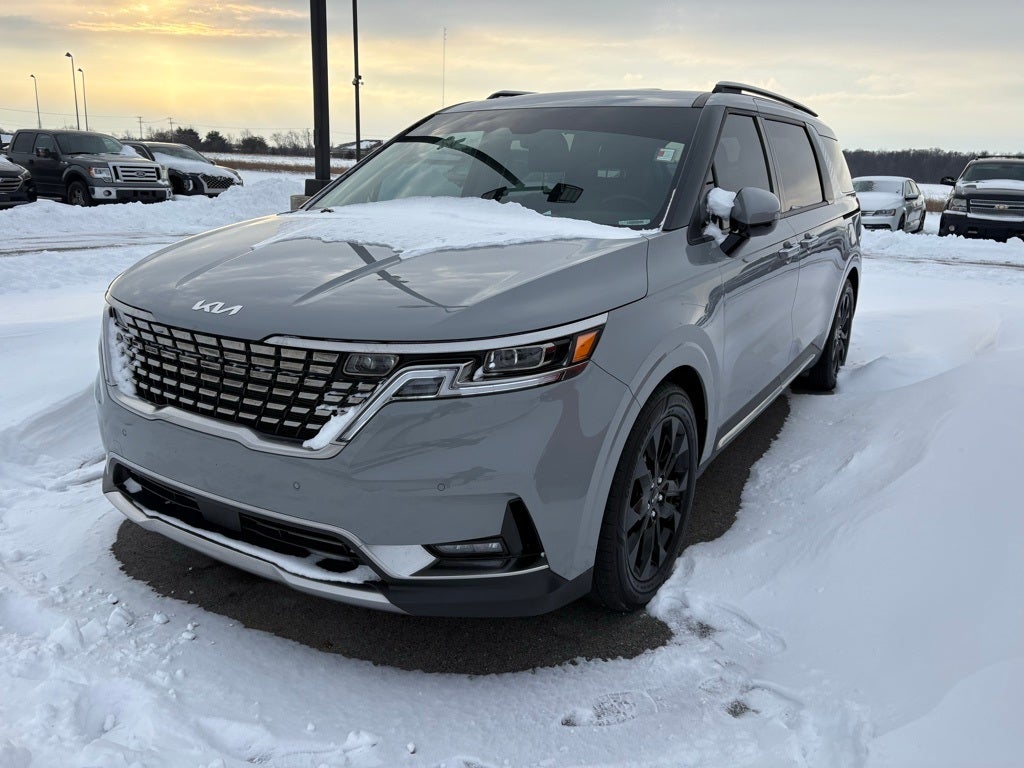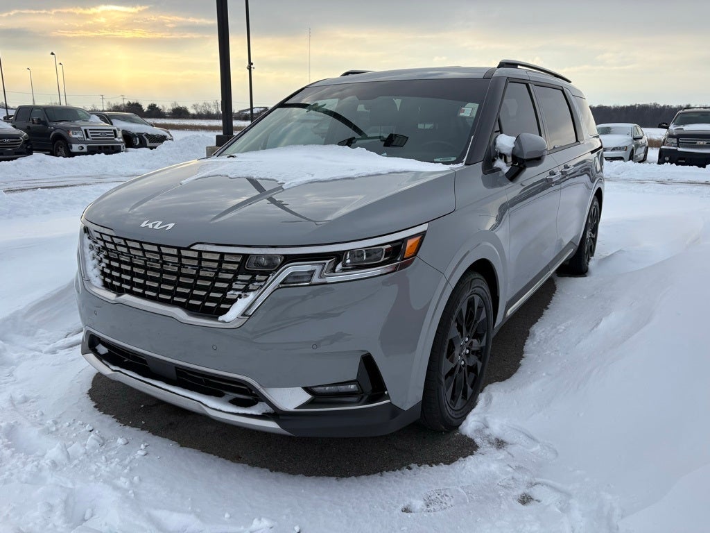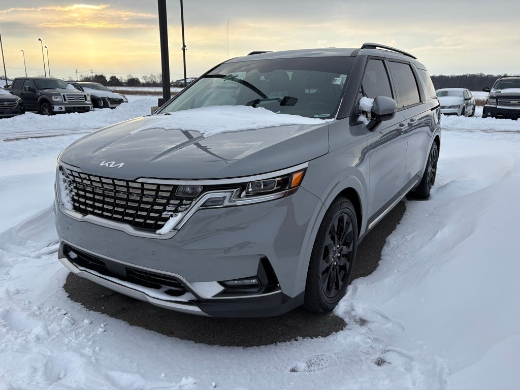 Professionally Detailed, Fully Inspected and Serviced, Certified Pre-owned, Kia Certified Pre-Owned Certified, Navigation System, Radio: AM/FM/HD Audio System, 3.51 Axle Ratio, 3rd row seats: split-bench, 4-Wheel Disc Brakes, ABS brakes, Air Conditioning, Alloy wheels, AM/FM radio: SiriusXM, Apple CarPlay & Android Auto, Auto High-beam Headlights, Automatic temperature control, Brake assist, Bumpers: body-color, Cargo Mat, Cargo Net, Carpeted Floor Mats (8-Passenger), Compass, Delay-off headlights, Driver door bin, Driver vanity mirror, Dual front impact airbags, Dual front side impact airbags, Electronic Stability Control, Emergency communication system, Exterior Parking Camera Rear, Four wheel independent suspension, Front anti-roll bar, Front Bucket Seats, Front Center Armrest, Front dual zone A/C, Front fog lights, Front reading lights, Fully automatic headlights, Heated & Ventilated Front Bucket Seats, Heated door mirrors, Heated front seats, Illuminated entry, Knee airbag, Leather Shift Knob, Leather steering wheel, Low tire pressure warning, Memory seat, Occupant sensing airbag, Outside temperature display, Overhead airbag, Overhead console, Panic alarm, Passenger door bin, Passenger vanity mirror, Power door mirrors, Power driver seat, Power Liftgate, Power passenger seat, Power steering, Power windows, Rear air conditioning, Rear anti-roll bar, Rear reading lights, Rear window defroster, Rear window wiper, Reclining 3rd row seat, Remote keyless entry, Roof rack: rails only, Security system, Speed control, Speed-sensing steering, Split folding rear seat, Spoiler, Steering wheel mounted audio controls, Tachometer, Telescoping steering wheel, Tilt steering wheel, Traction control, Trip computer, Turn signal indicator mirrors, Variably intermittent wipers, Ventilated front seats, Wheels: 7.5J x 19 Black Painted Alloy, Navigation System, Radio: AM/FM/HD Audio System.